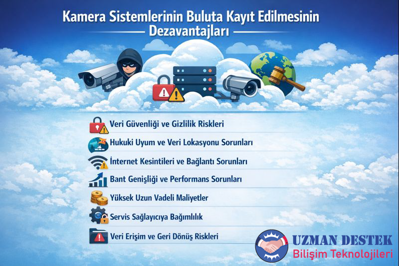 1. Veri Güvenliği ve Gizlilik Riskleri Bulut tabanlı kamera kayıtlarında görüntü verileri, kurum veya bireyin fiziksel kontrolü dışında üçüncü taraf servis sağlayıcıların veri merkezlerinde saklanmaktadır. Bu durum, yetkisiz erişim, veri ihlali, siber saldırılar ve veri sızıntısı risklerini artırmaktadır. Özellikle uçtan uca şifrelemenin yeterince uygulanmadığı sistemlerde, görüntü verileri kritik güvenlik açığı haline gelebilmektedir. Ayrıca kamera görüntüleri, […]